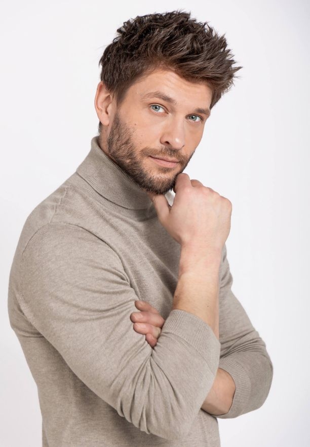 Béžový pánský rolák S-MAX má klasický střih a vyznačuje se minimalistickým designem. Protože je ušitý z lehké pleteniny s klasickou vazbou, osvědčí se jak na podzim, v zimě, tak i na jaře v chladnější den. Pletenina je měkká a příjemná na dotek, což zvyšuje komfort nošení.