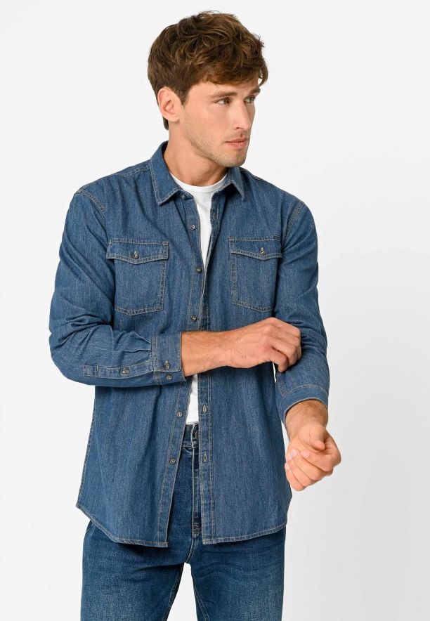 Hledáte volnou, ležérní košili pro každý den? Určitě si prohlédněte naši košili K-TENY. Je to pánská džínová košile v modré barvě. Její autentická, modrá barva a přírodní struktura materiálu jí dodávají nadčasový charakter. Pro větší volnost nošení jsme ji ušili ve střihu regular. Střih Regular Fit zajišťuje komfort a volnost pohybu, dokonale se přizpůsobí každé postavě bez zbytečného obepínání. Kromě toho je košile vybavena dvěma praktickými kapsami s patkami na hrudi, zapínanými na knoflíky, které zdůrazňují její džínový charakter a zvyšují funkčnost.