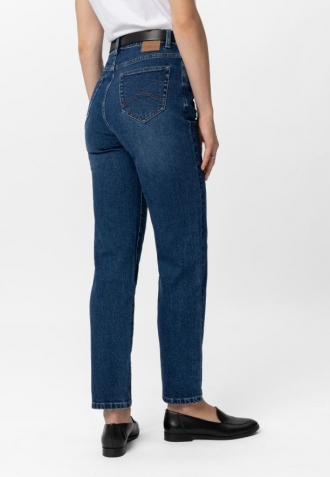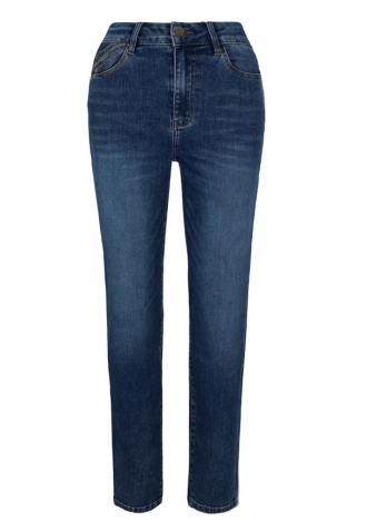 Dámské džínové kalhoty v klasickém stylu. Džíny D-SANA jsou ušité z modré bavlny s přídavkem elastanu. Díky tomu jsou prodyšné a dobře se skládají na postavě. Modrá barva dodává kalhotám klasický a nadčasový vzhled.