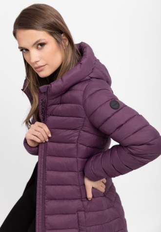 Prošívaný dámský kabát na přechodné období. J-BERGAMO je casualová nabídka značky Volcano na podzim a mírnou zimu. Kabát o délce ke kolenům má úzké, příčné prošívání, které udržuje na místě výplň z umělých vláken. To zajišťuje rovnoměrné rozložení tepla a komfort nošení.