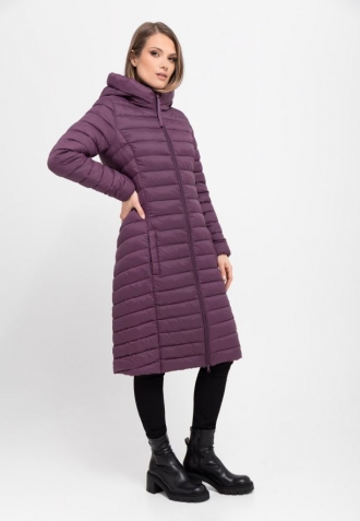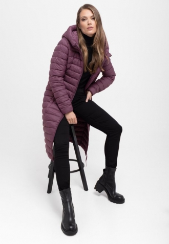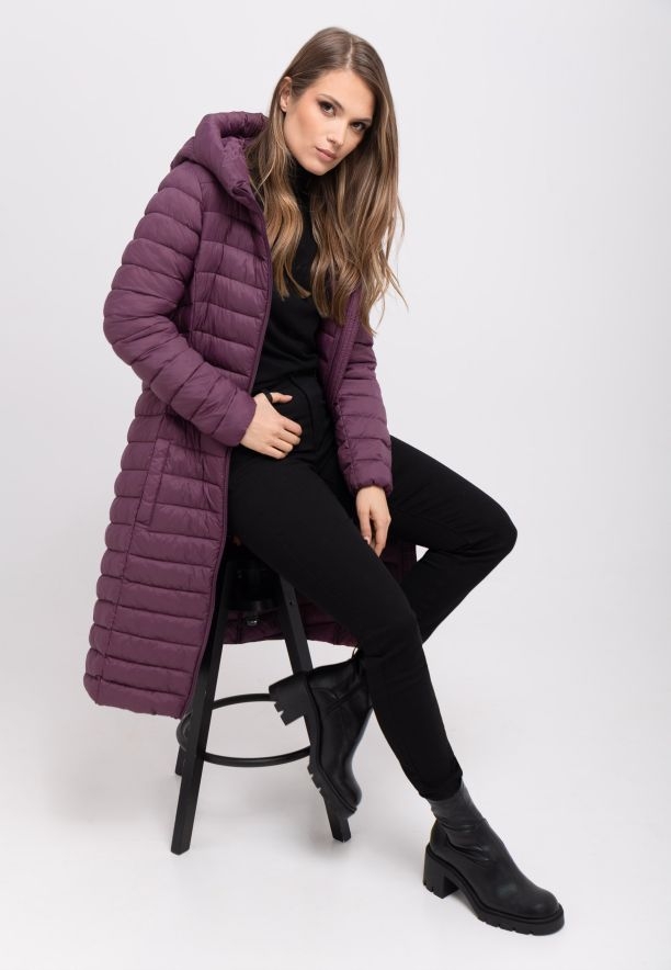 Tento teplý kabát má fialovou barvu, která se hodí prakticky ke všemu. Barva spolu s přiléhavým střihem zdůrazňují postavu a způsobují, že celek vypadá velmi elegantně. Podzimně - zimní dámský kabát má zabudovanou kapuci, která tvoří dodatečnou ochranu před větrem a deštěm. Stejně jako lišta skrývající zip, která nepropouští vítr dovnitř. Samotný zip je vybaven pohodlnými látkovými úchyty, které usnadňují jeho otevírání a zavírání.