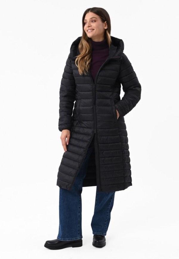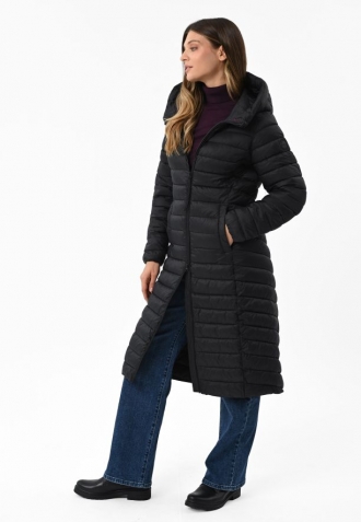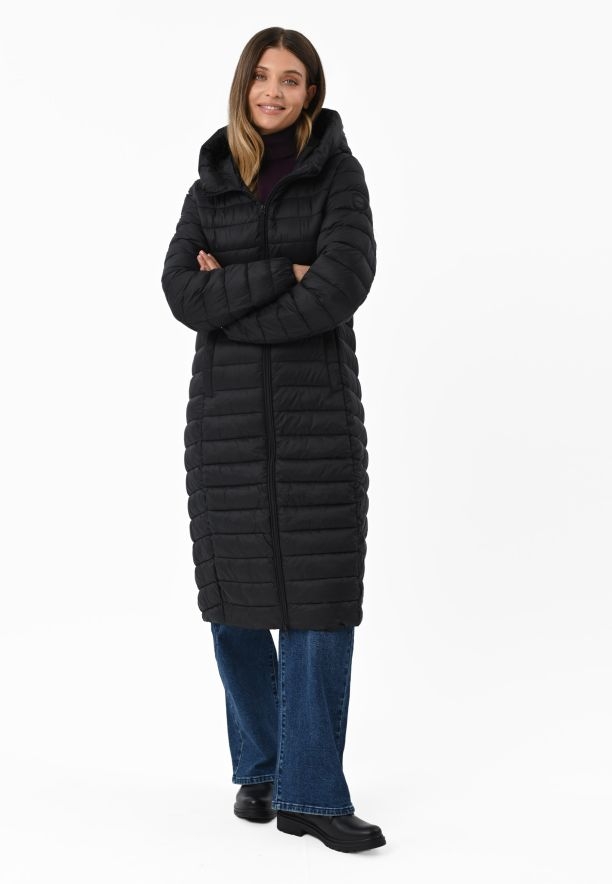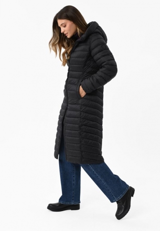 Prošívaný dámský kabát na přechodné období. J-BERGAMO je casualová nabídka značky Volcano na podzim a mírnou zimu. Kabát o délce ke kolenům má úzké, příčné prošívání, které udržuje na místě výplň z umělých vláken. To zajišťuje rovnoměrné rozložení tepla a komfort nošení.