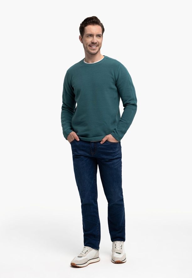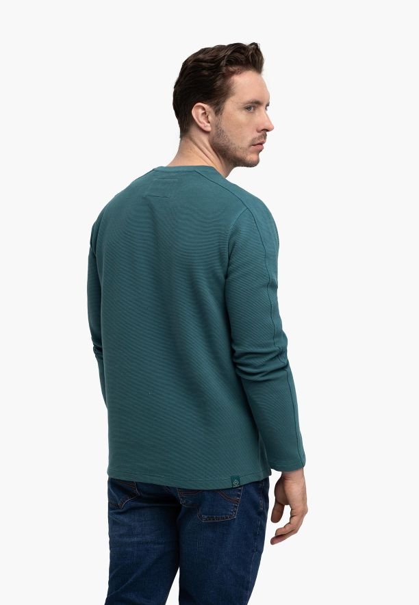 Vsaďte na pohodlí a univerzální styl – pánské tričko s dlouhým rukávem v tyrkysovém odstínu je ideální volbou pro každý den. Vyrobeno z bavlněné pleteniny s žebrovaným úpletem, zajišťuje komfort nošení a volnost pohybu, bez ohledu na příležitost. Pečlivě provedené detaily, klasický střih a strukturovaná textura pleteniny činí z tohoto trička s dlouhým rukávem skvělou alternativu k mikině nebo košili. Hledáte univerzální casualové oblečení? Toto pánské tričko s dlouhým rukávem kombinuje módní vzhled s komfortem používání.