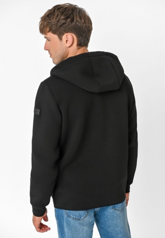 Střih Regular Fit, který byl použit u mikiny, zaručuje volnost pohybu a dobře sedí na postavě. Kapuce s vysokým límcem a vnitřními stahovacími šňůrkami účinně chrání před větrem a zip s pohodlným úchytem usnadňuje používání i v rukavicích. Pánská mikina v černém odstínu je zakončena širokými stahovacími lemy na manžetách a elastickým lemem na spodním okraji, což zajišťuje lepší padnutí. Praktické kapsy s lištou umožňují bezpečné uložení drobností, jako je telefon nebo klíče. Je to vynikající volba pro muže hledající stylovou a funkční mikinu pro každé roční období.