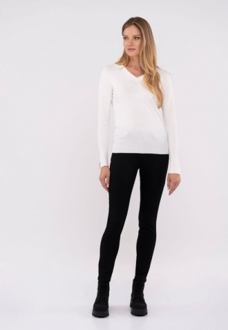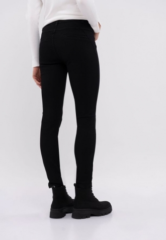Kalhoty mají vpředu dvě imitace šikmých kapes. Také na zadní straně jsou dvě imitace kapsy, které opticky tvarují hýždě. Kalhoty mají také poutka na opasek, takže pas zvýrazníte oblíbeným páskem.