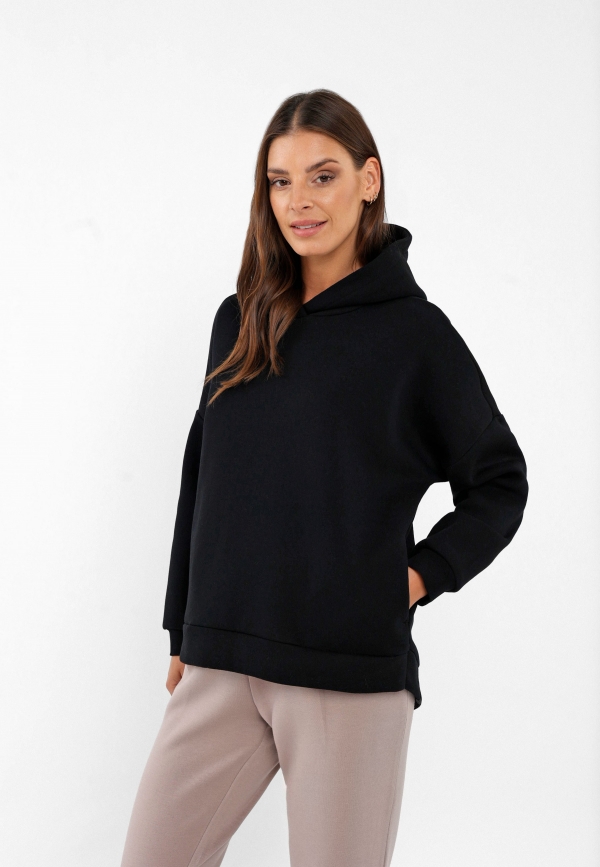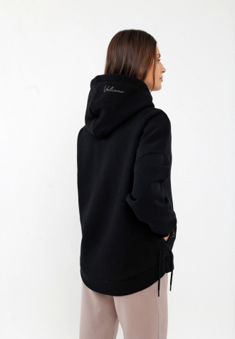 Pokud máte rádi oversized oblečení, mikinu B-SIGI si určitě zamilujete. Černá mikina má volný střih a oversize efekt navíc podtrhuje snížená linie ramen a prodloužená záda. Mikina má teplou a prostornou kapuci, díky čemuž je ideální pro chladnější dny. Je vyrobena z hřejivého fleecu, jehož vnitřek je podšitý měkkým, příjemným prachovým peřím.