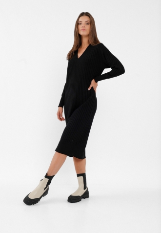 Žebrované šaty G-LIBI vyrobené z látky příjemné na dotek zaručují pohodlí při nošení po celý den. Šaty ozvláštňují svislé pruhy po celé ploše, které opticky prodlužují siluetu. Výstřih do V dodává jemnost a eleganci. Manžety zakončené širokými manžetami a spodní část s volnou širokou manžetou zajistí dokonalé přizpůsobení každé postavě.