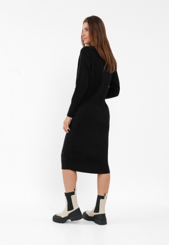 Módní, úpletové šaty G-LIBI černé barvy se vyznačují proužky, ale i délkou. Tyto svetrové šaty jsou dlouhé ke kolenům. Neomezuje však pohyb díky volnému dnu a přídavku polyamdu ve složení, který zajišťuje pružnost. Volný střih pletených šatů zajišťuje volnost pohybu a dodává jim ležérní kouzlo, což z nich dělá perfektní volbu jak pro každodenní nošení, tak pro elegantnější příležitosti.