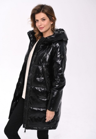Dlouhá dámská bunda J-BLANC je ušitá z lesklé lícové tkaniny. Je vyplněna polyesterovými vlákny a představuje velmi dobrou alternativu k prachovému peří. Polyester zajišťuje správné tepelné podmínky a dobře izoluje proti chladu. Kromě toho se velmi dobře osvědčuje ve vlhkém dni. Umělá vlákna neabsorbují tolik vody, takže se neshrnou a bunda neztrácí střih. Příčné prošívání zajišťuje, že výplň zůstává stále na stejném místě. Prošívání a třpytky jsou módními prvky zimních péřových bund.