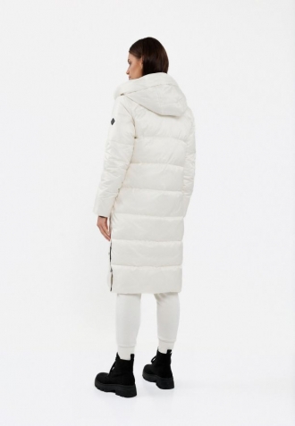 J-FIORDA je pohodlný dámský kabát pro zimní dny. Hřejivý kabát v béžové barvě má ozdobné prošívání a kapuci s vysokým límcem, která je navíc lemovaná hřejivým fleecem. Vysoký stojatý límec a dlouhý rovný střih poskytují ochranu před chladem a větrem, stejně jako pletené vnitřní žebrované manžety. Kvůli rovnému střihu tohoto zimního kabátu se naši návrháři rozhodli přidat boční zipy, které se zapínají na patentky. Ty spolu s volným spodním okrajem umožňují nastavení šířky a volnost pohybu.