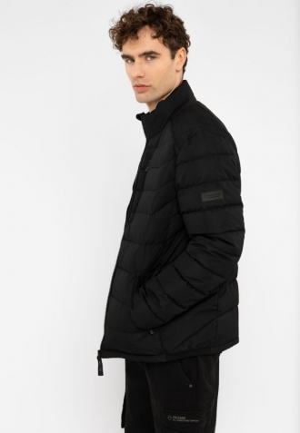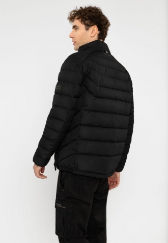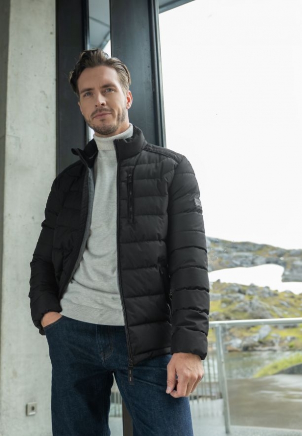 Pánská prošívaná bunda byla ušita v klasickém střihu. Je rovná a ve spodní části zakončená bočními švy. Prošívání zajišťuje rovnoměrné rozložení výplňových komor, a tím i hřejivost. Další teplo zajišťuje límec zakončený na vnitřní straně příjemným úpletem. Co tuto prošívanou pánskou bundu odlišuje, je šedá podšívka s velkým nápisem Volcano.