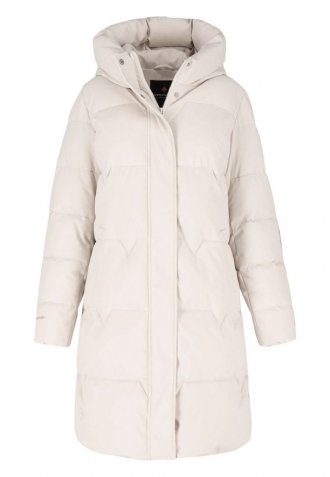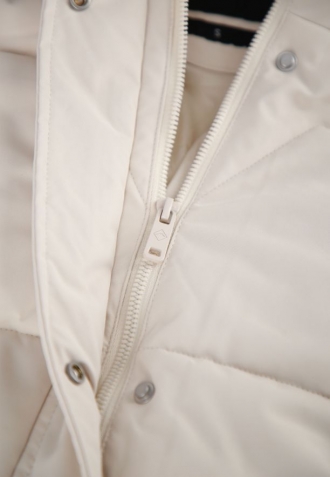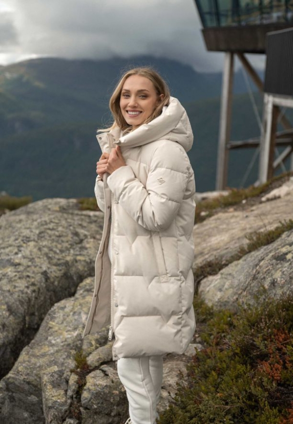 J-LUCY je dámský kabát, který kombinuje moderní design s promyšlenými detaily. Kabát krémové barvy má mírně přiléhavý střih, který zvýrazňuje siluetu a zároveň poskytuje pohodlí a volnost pohybu. Je vyroben z odolné matné lícové tkaniny, která je dále vylepšena ozdobným prošíváním. To dodává kabátu originální vzhled a poskytuje ochranu proti větru a chladu.
