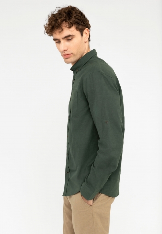 K-AXEL je hladká košile ušitá z měkké a na dotek příjemné bavlny. Pánská košile v zelené barvě se zapíná na ozdobné knoflíky, které najdete také na límci s knoflíky. Střih regular fit a ohrnuté rukávy zaručují volnost pohybu a univerzálnost stylingu, ideální pro formální i neformální kombinace.