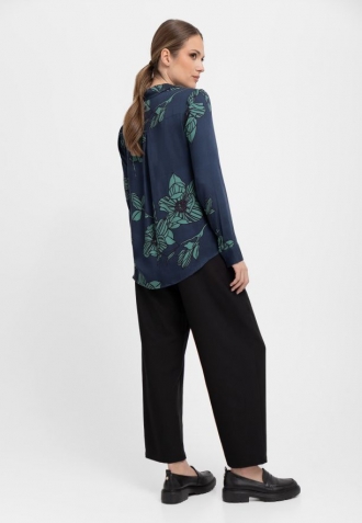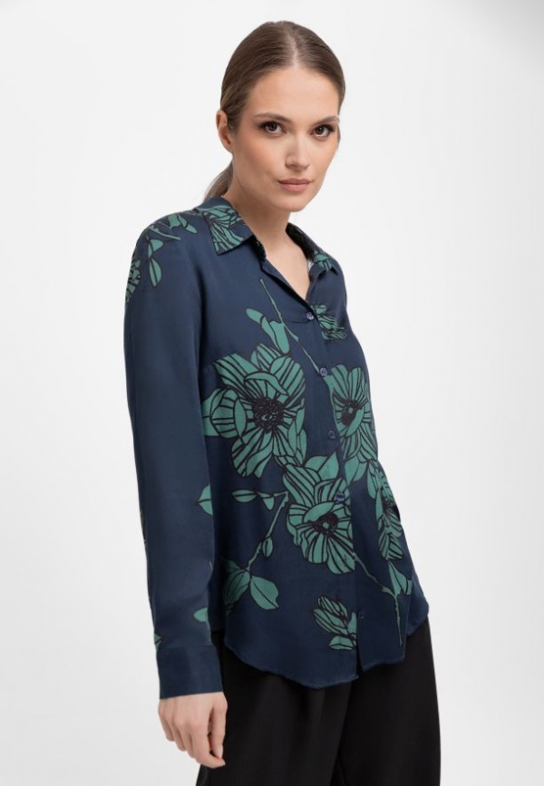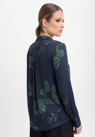 Košile má volný, zaoblený spodní okraj, který se skvěle nosí jak zastrčený, tak volně. Vzor s velkými květy přitahuje pozornost. Květinový vzor v kontrastních barvách dodává charakter – je to výrazný prvek stylizace, který celku propůjčuje umělecký, moderní akcent. Je to ideální volba pro stylizace s látkovými kalhotami nebo oblíbenými džíny.