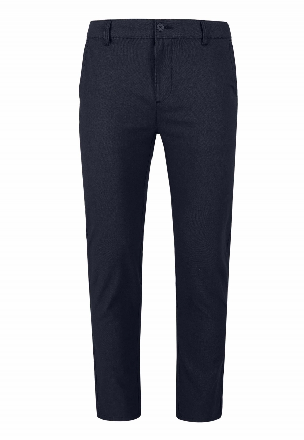 Zajímavým zpestřením kalhot je drobný vzor na materiálu. Modrá barva se bude hodit prakticky ke každé košili, svetru nebo tričku. Díky klasické sadě kapes se kalhoty hodí do tradičního střihu chinos kalhot. Vepředu jsou dvě šikmé a vzadu jsou zapuštěné a zapínají se na knoflík.