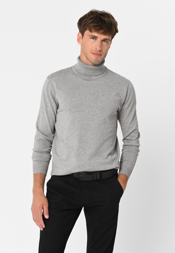 Šedý pánský rolák S-MAX má klasický střih a vyznačuje se minimalistickým designem. Protože je ušitý z lehké pleteniny s klasickou vazbou, osvědčí se jak na podzim, v zimě, tak i na jaře v chladnější den. Pletenina je měkká a příjemná na dotek, což zvyšuje komfort nošení.