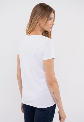 Máte rádi základní oblečení? Tričko T-DIANA s krátkým rukávem v bílé barvě se vám jistě bude líbit. Díky hladké struktuře je halenka ideální pro vytváření outfitů v různých stylech. Jednoduchý design je obohacen o malý detail Volcano.