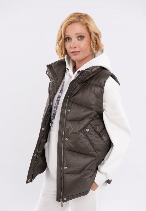 V-ADEL je vesta, kterou si zamilujete nejen pro její módní oversized střih, ale také pro její barvu. Tato podzimně-zimní vesta má hnědou barvu, která se skvěle hodí ke světlým outfitům. Můžete ji nosit samostatně nebo přes džínovou bundu či teplou mikinu. Je vyplněna umělým prachovým peřím, takže vás příjemně zahřeje.