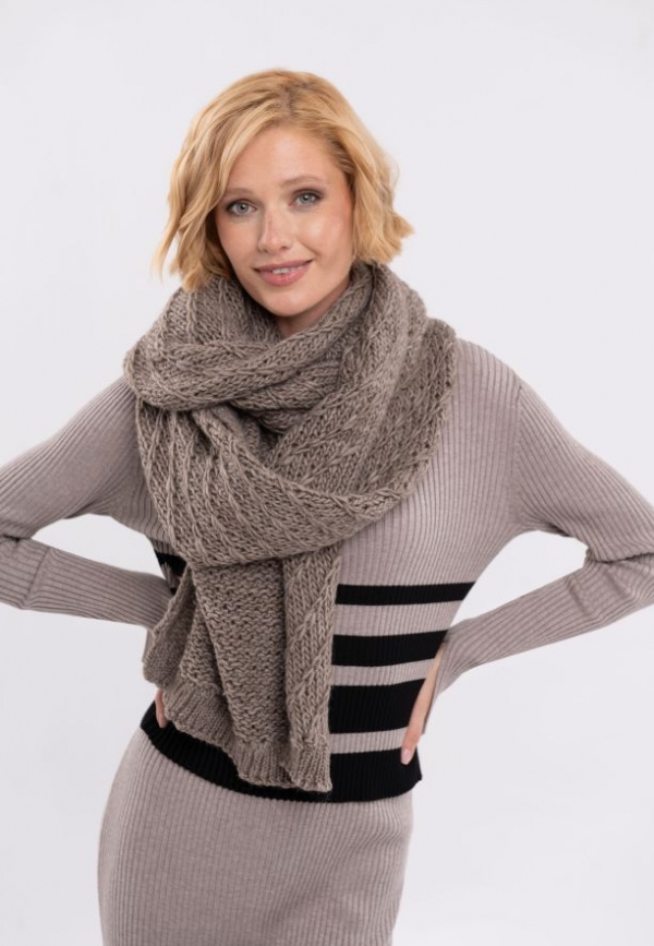 Hnědá zimní šála tvoří sadu s čepicí H-BIU ve stejné barvě.