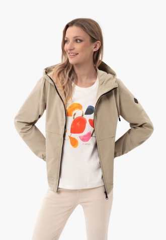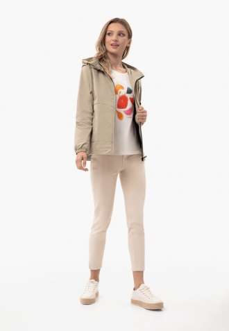 Dámská přechodová bunda nesmí chybět ve vašem šatníku. Poskytuje pohodlnou a nezbytnou vrstvu během jarního slunovratu a je také cool stylovým prvkem. Bunda v béžové barvě má jednoduchý a ležérní střih, takže ji můžete pohodlně nosit přes silnější kousky, jako je mikina, a stylizovat ji sportovně. K tomu přispívá i volný spodní lem, který lze v případě potřeby stáhnout vnitřní šňůrkou.