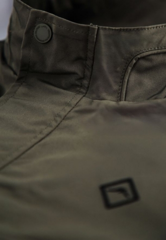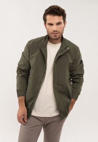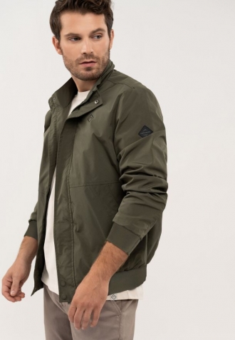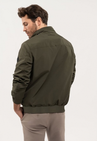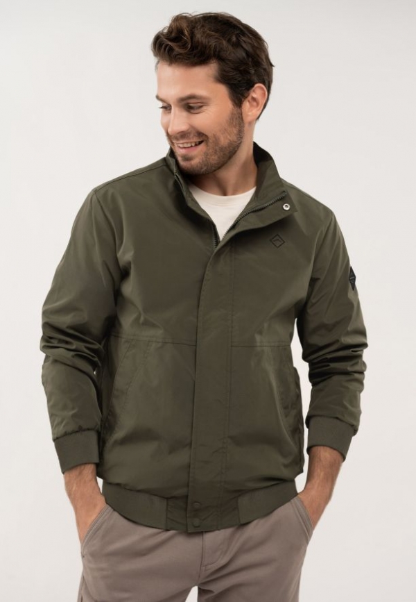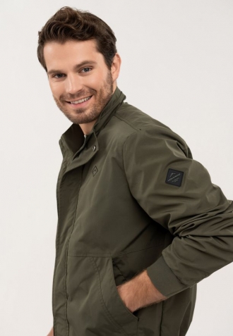 Přechodová bunda se zapíná na jednosměrný zip ukrytý pod lemem s druky, který jí dodává na eleganci. Funkčnost zajišťují dvě vnější kapsy se zapínáním na druky a jedna praktická vnitřní kapsa na zip. Manžety rukávů a spodní lem jsou zakončeny pružnými žebrovanými lemy pro dokonalé přizpůsobení a pohodlí při každodenním nošení.