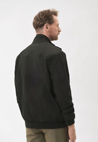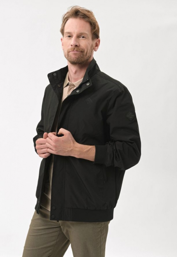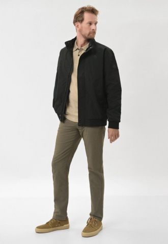 Přechodová bunda se zapíná na jednosměrný zip ukrytý pod lemem s druky, který jí dodává na eleganci. Funkčnost zajišťují dvě vnější kapsy se zapínáním na druky a jedna praktická vnitřní kapsa na zip. Manžety rukávů a spodní lem jsou zakončeny pružnými žebrovanými lemy pro dokonalé přizpůsobení a pohodlí při každodenním nošení.