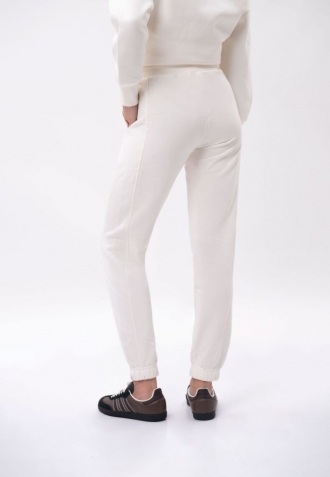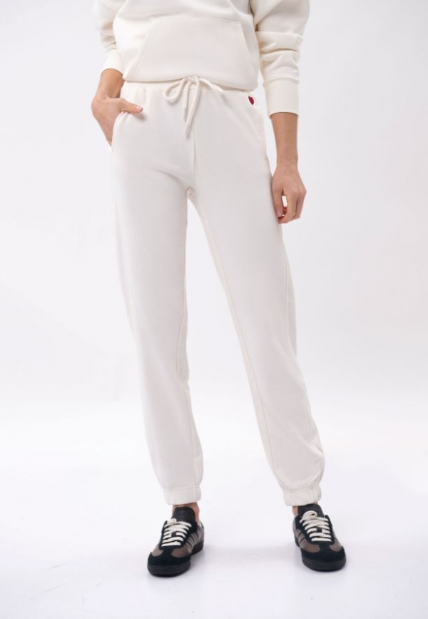 Tepláky jsou vybaveny dvěma bočními kapsami, z nichž levá má decentní vyšívané srdíčko, které jim dodává charakter. Boky jsou vertikálně prošity stejným úpletem, což je módní akcent, který podtrhuje jejich jedinečný styl. Dámské tepláky N-ZEN jsou ideální pro klidný den doma i pro sportovní aktivity. Můžete je kombinovat s mikinou B-LOVE.