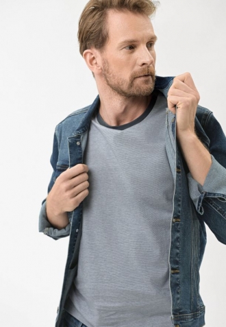 T-CAS je pánské tričko bez potisků, které se vyznačuje melanžovou strukturou. Díky tomu má tričko, přestože je jednobarevné, originální vzhled. Za zmínku stojí také to, že límec je o něco tmavší než zbytek trička, což vytváří jemný kontrast.