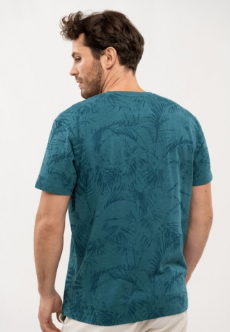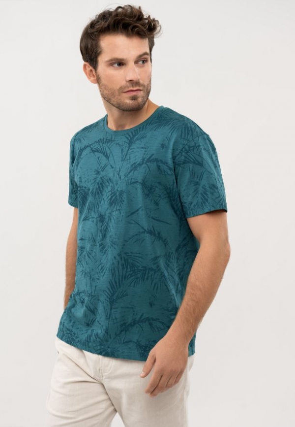 Tyrkysové pánské tričko je ušité z prodyšného, přírodního materiálu a zajišťuje pohodlí při nošení po celý den, i v teplejších dnech. Je to zásluha nejen materiálu, ale také volného střihu Comfort Fit. Spolu s půlkulatým výstřihem zakončeným žebrovaným lemem zaručují volnost pohybu a skvělé přizpůsobení každé postavě.