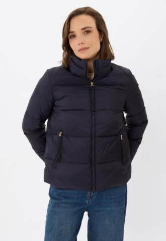 J-GIGI je tmavě modrá bunda puffer je ideální volbou pro chladnější dny. Její svrchní materiál je polyamid, který zajišťuje vynikající ochranu před větrem, chladem a lehkým deštěm, zároveň je snadný na údržbu a odolný proti oděru. Tato prošívaná dámská bunda má univerzální střih, který se hodí k mnoha stylizacím, od casualových po více sportovní.