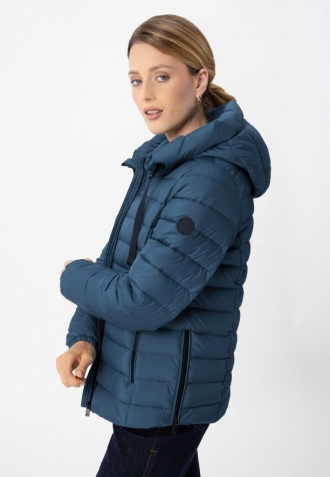 J-NORDIC je dámská přechodná bunda, která se hodí i do mírné zimy. Jedná se o dámskou bundu vypasovaného střihu, kterou se vyznačuje horizontálním prošíváním a modrou barvou. Je vyplněna lehkým, syntetickým peřím, které má vynikající izolační vlastnosti. Díky tomu prošívaná bunda J-NORDIC účinně chrání před chladem. Polyesterová vlákna jsou také odolná proti vlhkosti, což znamená, že bunda rychle schne a udržuje si své vlastnosti i ve vlhkých podmínkách.