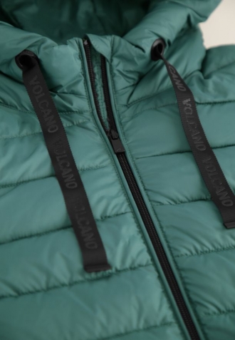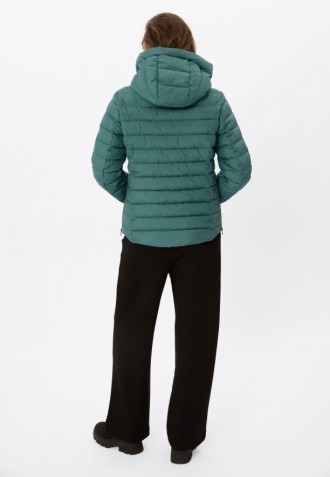 J-NORDIC je dámská přechodná bunda, která se hodí i do mírné zimy. Jedná se o dámskou bundu vypasovaného střihu, kterou se vyznačuje horizontálním prošíváním a zelenou barvou. Je vyplněna lehkým, syntetickým peřím, které má vynikající izolační vlastnosti. Díky tomu prošívaná bunda J-NORDIC účinně chrání před chladem. Polyesterová vlákna jsou také odolná proti vlhkosti, což znamená, že bunda rychle schne a udržuje si své vlastnosti i ve vlhkých podmínkách.