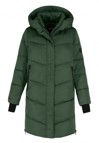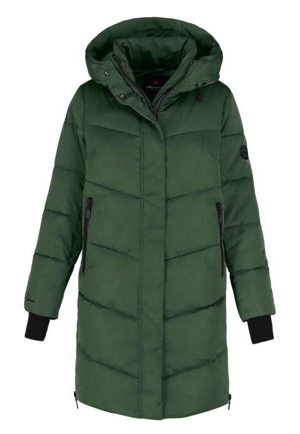 Tento dámský zimní kabát je ideální volbou pro chladné dny. Díky výplni z polyesterových vláken dokonale izoluje teplo a zajišťuje komfort i při velmi nízkých teplotách. Prošívaný kabát má praktickou kapuci s možností regulace a vysoký límec, který účinně chrání před větrem a sněhem. Dodatečné vybavení, jako jsou dvě kapsy na zip a elastické manžety, zvyšují pohodlí každodenního používání. Střední délka kabátu zajišťuje optimální ochranu před chladem, aniž by omezovala volnost pohybu.