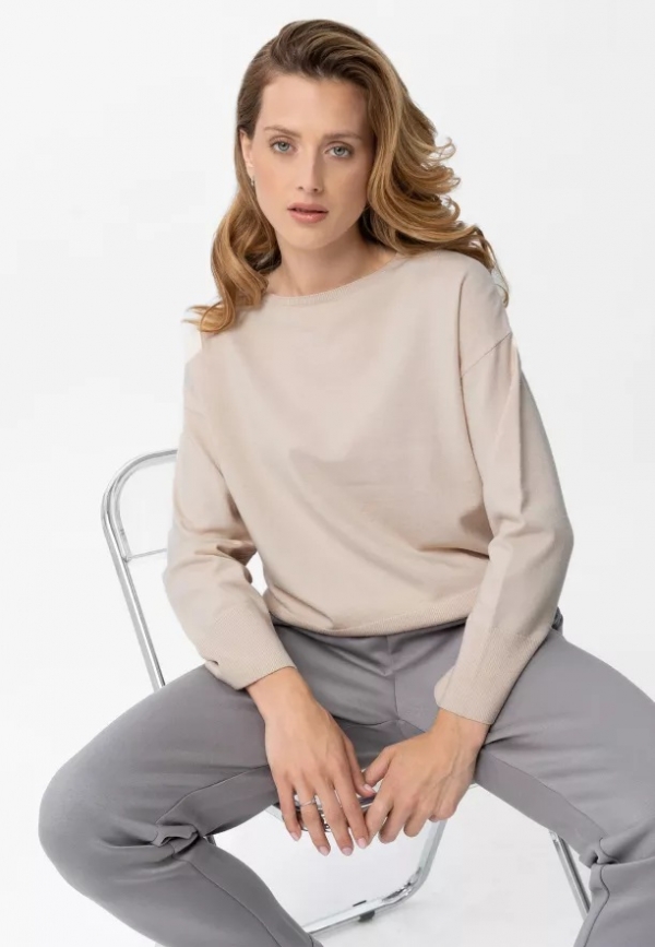 Hladký dámský svetr v krémové barvě