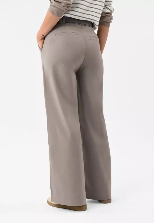 Kalhoty, které jsou ideální? Ano - dámské kalhoty R-HUS! Tyto látkové kalhoty můžete s úspěchem obléknout do práce, stejně jako na společenské nebo kulturní setkání. Kalhoty s širokou, volnou nohavicí jsou přiléhavé v pase a zapínají se na zip a háček. Abychom je ještě lépe přizpůsobili pasu, přidali jsme do kompletu elegantní pásek. Tyto kalhoty střihu wide leg jsou must-have ve Vašem šatníku.