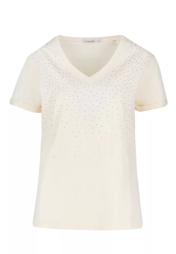 Krémové dámské tričko s kamínky