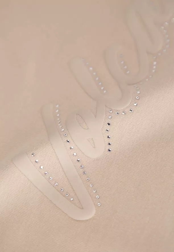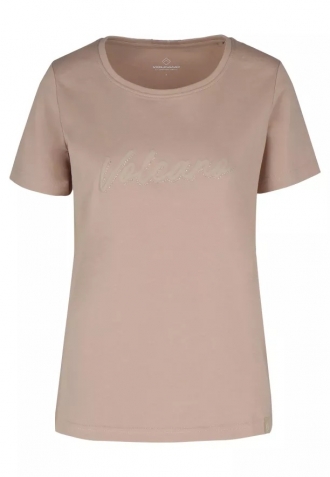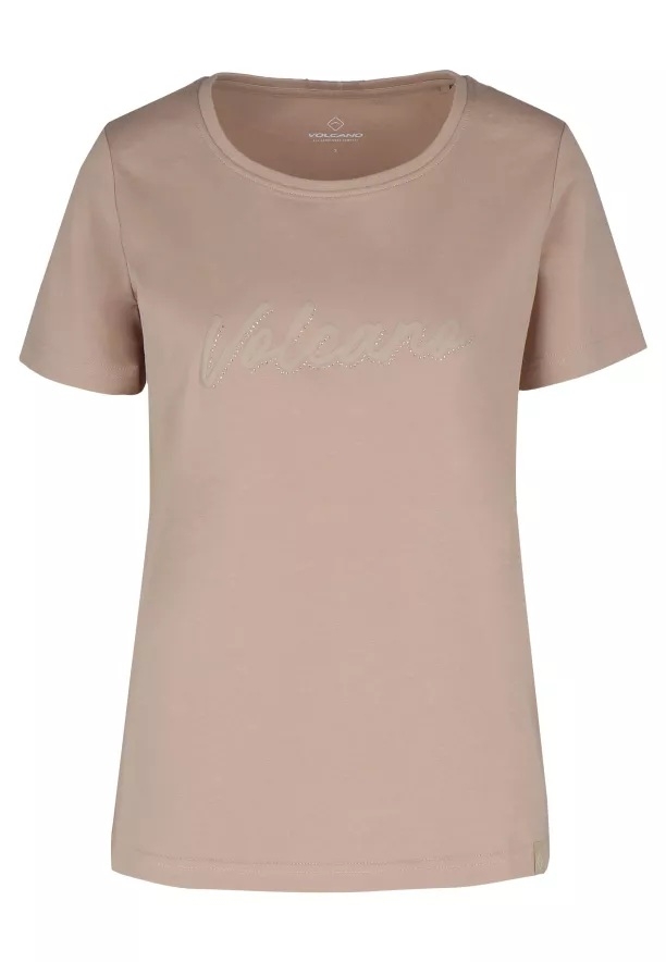 Přední stranu trička zdobí nápis Volcano, obohacený lesklými kamínky, díky čemuž celek získává výjimečný charakter. Klasický krátký rukáv a přírodní, masivní materiál dělají z něj ideální volbu jak k džínům a teniskám, tak k více ženským setům se sukní nebo sakem.