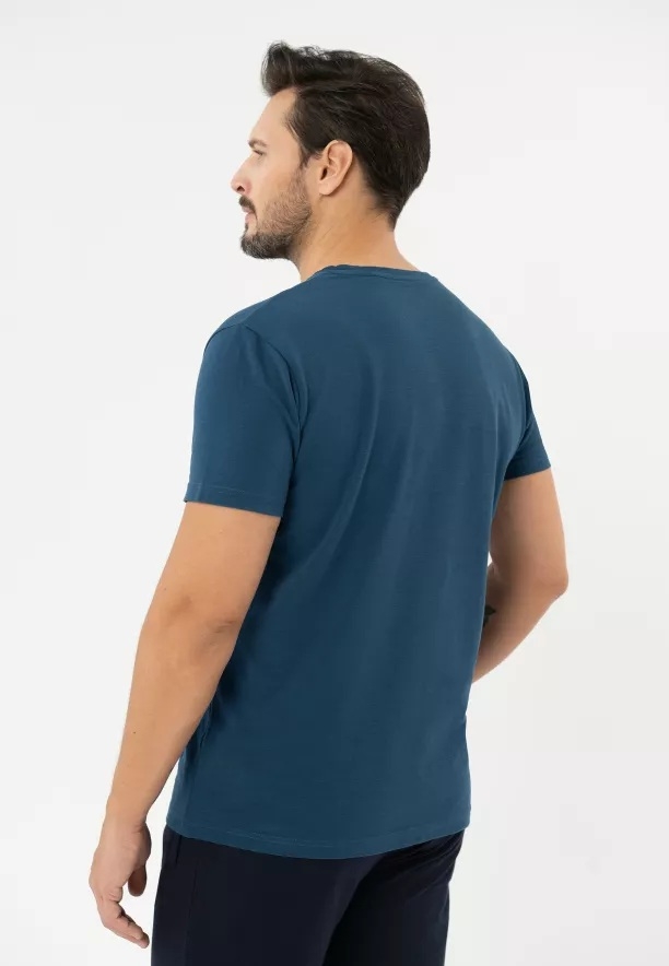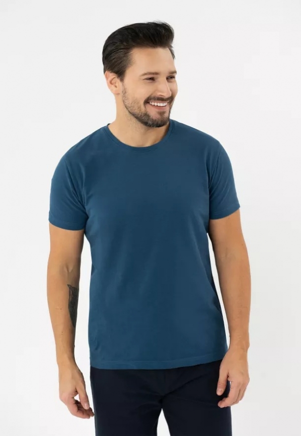 T-shirt v denimové barvě byl ušit v klasickém střihu Regular Fit, díky čemuž zvýrazňuje postavu, ale nepne se. Navíc zajišťuje odpovídající ventilaci vzduchu. Basic t-shirt se ideálně hodí k prakticky jakémukoliv stylingu a tvoří nezbytný prvek pánského šatníku.