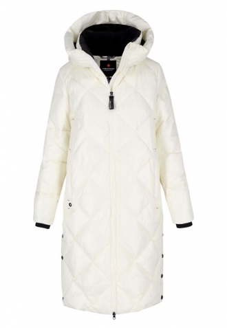 J-FIORDA je pohodlný dámský kabát pro zimní dny. Hřejivý kabát v béžové barvě má ozdobné prošívání a kapuci s vysokým límcem, která je navíc lemovaná hřejivým fleecem. Vysoký stojatý límec a dlouhý rovný střih poskytují ochranu před chladem a větrem, stejně jako pletené vnitřní žebrované manžety. Kvůli rovnému střihu tohoto zimního kabátu se naši návrháři rozhodli přidat boční zipy, které se zapínají na patentky. Ty spolu s volným spodním okrajem umožňují nastavení šířky a volnost pohybu.
