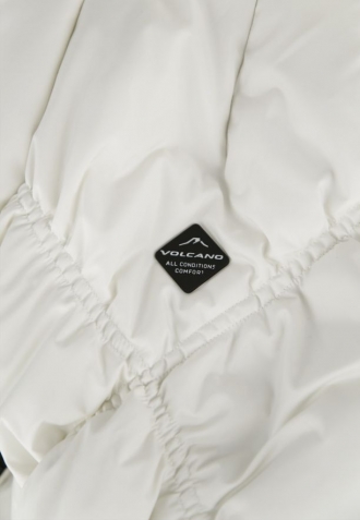 Seznamte se s novou dámskou zimní bundou Volcano. J-FROZEN je krémová zimní bunda, která zaujme originálním designem a funkčností. Tato prošívaná dámská bunda vás účinně ochrání před chladem díky výplni z umělého prachového peří. Vestavěná kapuce se stojáčkem a manžety zakončené širokým žebrovaným lemem s otvorem na palec poskytují dodatečnou ochranu před chladem a větrem. Spodní část bundy lze snadno upravit pomocí vnitřní stahovací šňůrky pro ještě lepší tepelnou izolaci.