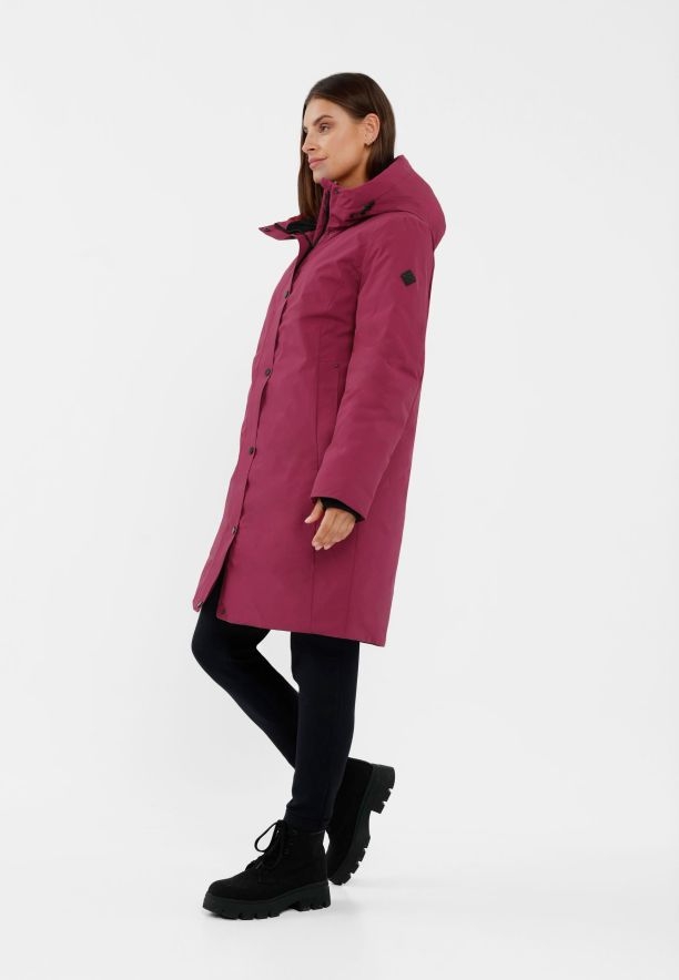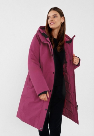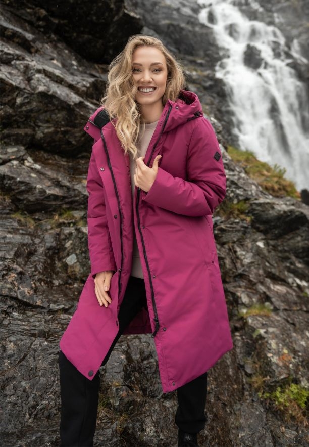 Hřejivý dámský zimní kabát ve fuchsiové barvě
