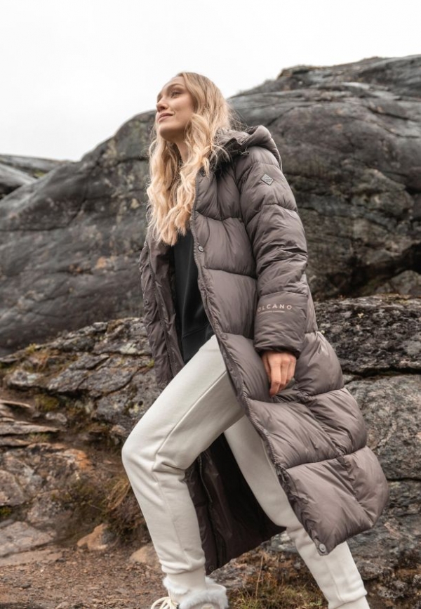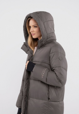 Zimní kabát J-MACADAMIA v hnědé barvě má rovný dlouhý střih, který nabízí volnost pohybu. Jedná se o teplý kabát, který má široké prošívání nejen pro moderní design, ale také drží polyesterová vlákna na svém místě a zaručuje tak tepelnou izolaci. Neodnímatelná kapuce s vysokým límcem poskytuje dodatečnou ochranu před větrem a chladem, zatímco vnitřní stahování kapuce umožňuje dokonalé přizpůsobení.