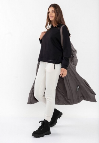 J-MACADAMIA je módní zimní kabát, který má mnoho funkcí. Inovativním řešením jsou šle pro nošení kabátu na zádech, které lze odepnout a upravit, což je mimořádně praktické při cestování nebo například při dlouhém nakupování v obchodě. Plastový jednosměrný zip zajišťuje pohodlné používání a magnetický pásek, pod kterým je ukryt, poskytuje dodatečnou ochranu před chladem. Manžety s vnitřní měkkou stahovací šňůrkou a otvorem na palec poskytují další teplo a pohodlí a chrání ruce před chladem a větrem. Dvě boční kapsy na patentky, zastrčené do prošívání, jsou praktické a diskrétní, ideální pro udržení rukou v teple. Vnitřní kapsa na zip je zase ideálním místem pro bezpečné uložení cenností.