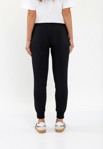 Tepláky N-VENIS jsou dostupné v černé barvě, která je univerzální a hodí se k mnoha různým stylům. Dámské tepláky mají klasický střih: volné, ale ne oversized. Pas a nohavice jsou zakončeny pohodlnými manžetami, díky kterým dobře padnou na tělo. Dvě boční kapsy se budou hodit pro uložení klíčů, telefonu nebo jiných drobností.