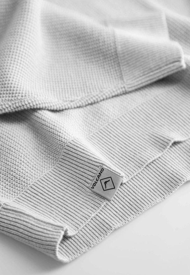 Svetr s minimalistickým designem má půlkruhový výstřih. Výstřih, manžety a spodní lem svetru jsou zakončeny žebrovaným lemem, který nejenže poskytuje estetický vzhled, ale také účinně udržuje teplo a chrání před chladem.