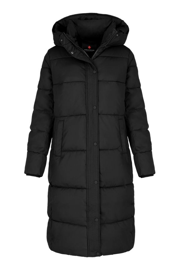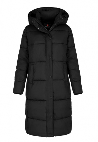 Dlouhý kabát je vybaven dvoucestným zipem skrytým pod ozdobnou lištou na patentky, což nejen dodává styl, ale také usnadňuje pohyb. Volnější spodní okraj zajišťuje volnost pohybu. Celek doplňují dvě praktické vnější kapsy, které jsou ideální pro zahřátí rukou nebo uložení drobností. Černý, prošívaný kabát J-SIMA je funkční a stylová volba pro každou ženu, která hledá komfort a teplo ve svém zimním šatníku.