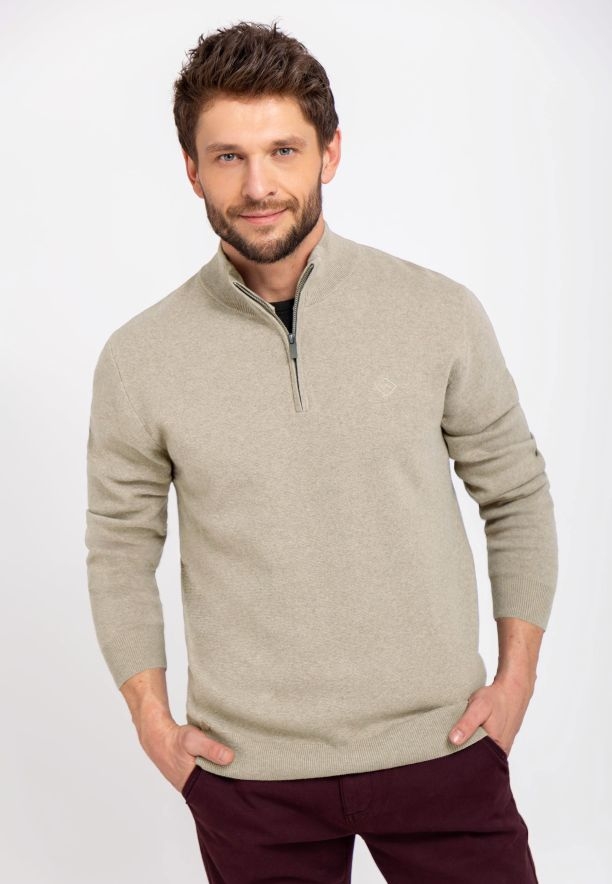 Pro fanoušky stojáčků jako výstřihu máme dobrou zprávu - můžete si koupit **svetr se stojáčkem.** Je to S-CARLO **krémový svetr** se stojáčkem, rozepínaným na zip. Je to funkční detail, který nejen dodává eleganci, ale také umožňuje tepelnou regulaci v závislosti na počasí. **Spodní lem a manžety svetru dokončené lemem** zajišťují dokonalé přizpůsobení.