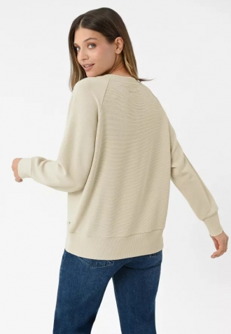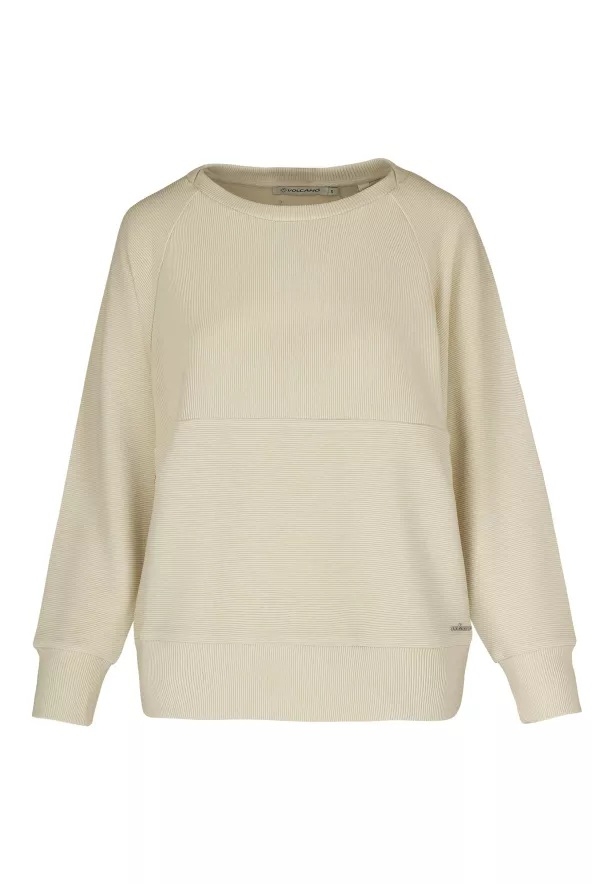 Krémová mikina B-MINK přitahuje pozornost svou jedinečnou strukturou a volným střihem. Dámská mikina je vyrobena z žebrovaného materiálu, který se skládá z viskózy, polyesteru a elastanu. Tato kombinace materiálů zaručuje mimořádnou měkkost, pružnost a trvanlivost, díky čemuž Vás bude mikina provázet po mnoho sezón.
