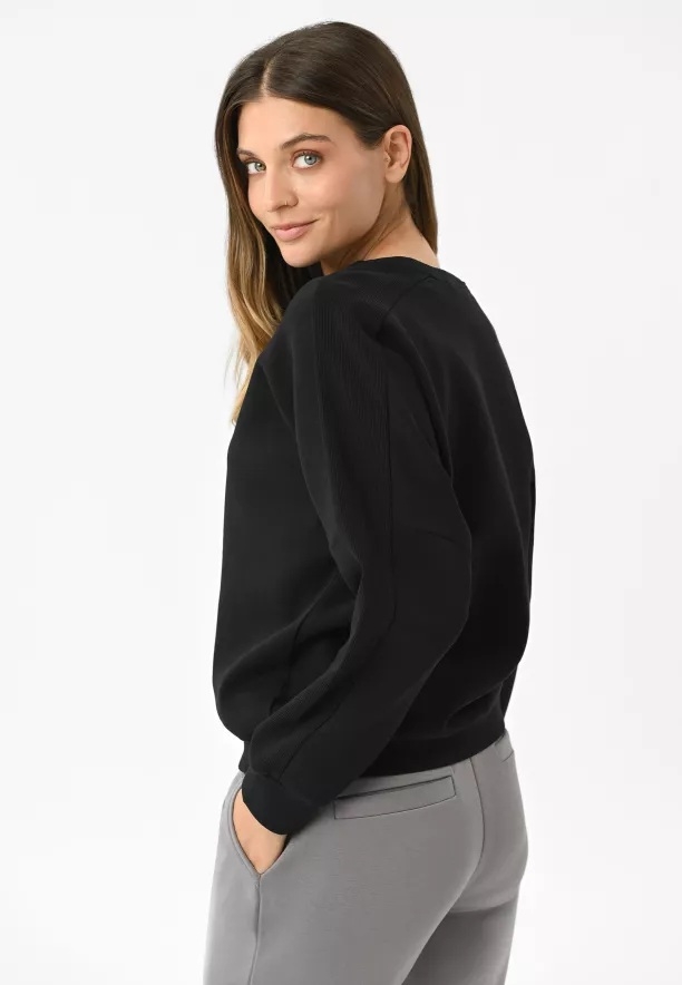 Pokud hledáte pohodlnou dámskou mikinu na každý den, pak by Vás měla mikina B-ALLURE zaujmout! Snížená linie rukávů a žebrované vsadky na rukávech narušují klasický střih této univerzální mikiny a dodávají jí výraznost. Mikina, která se obléká přes hlavu, má půlkulatý výstřih, který je zakončen lemem. Toto řešení zajišťuje, že se výstřih neroztahuje a pěkně sedí.