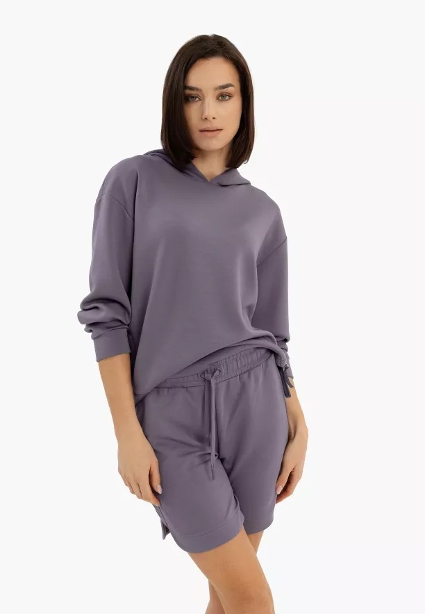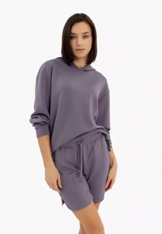 B-MIDA je volná dámská mikina ve vřesové barvě. Lze ji kombinovat s širokými tepláky N-EVA nebo šortkami M-LULI a vytvořit tak ležérní teplákovou soupravu.